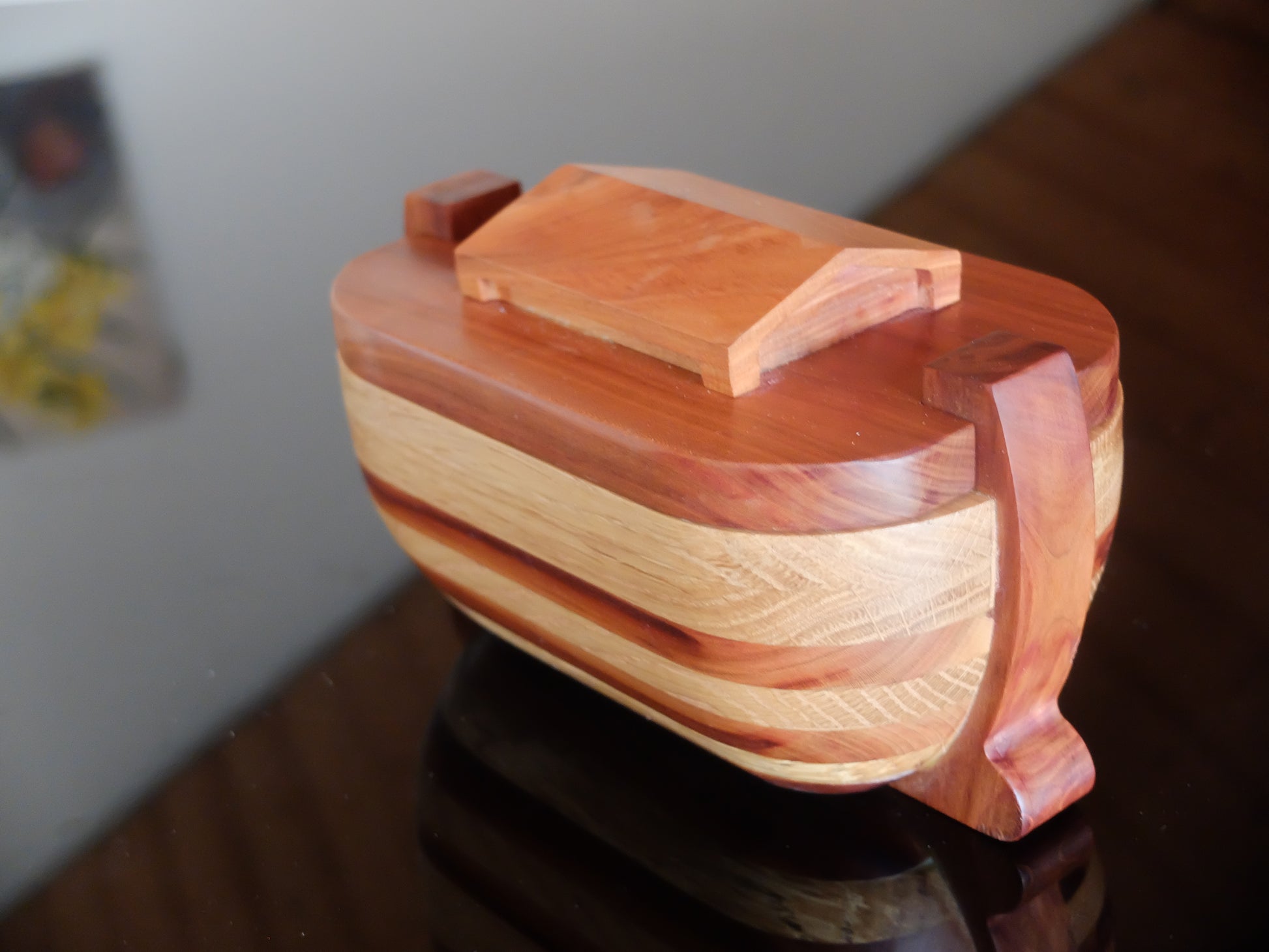 Eine Erinnerungskiste in Form der Arche Noah aus Eichen- und Kirschholz, die die zeitlose Botschaft der Hoffnung aus der Geschichte Noahs in sich trägt – ein herzliches Geschenk oder ein besonderer Platz für Ihre Schätze.